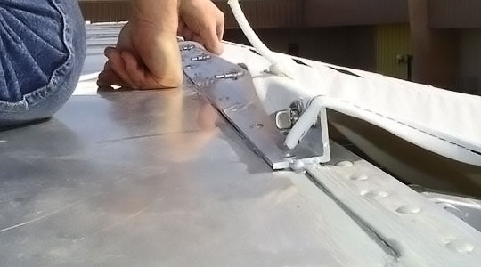 The Awning cover attaches to roof with quick release twists that are mounted on an anti leak roof angle. This becomes a rain gutter and eliminates water from running down side of trailer.