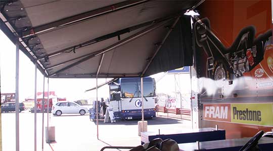 These extensions are designed to let the awning continue beyond trailer. Regardless of size of awning they are supported with legs. Extensions are available for either end of trailer.