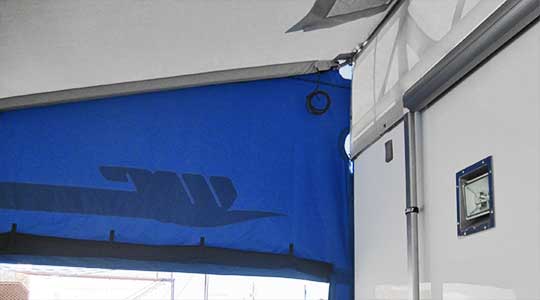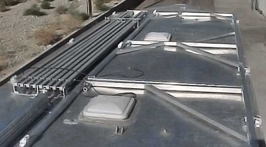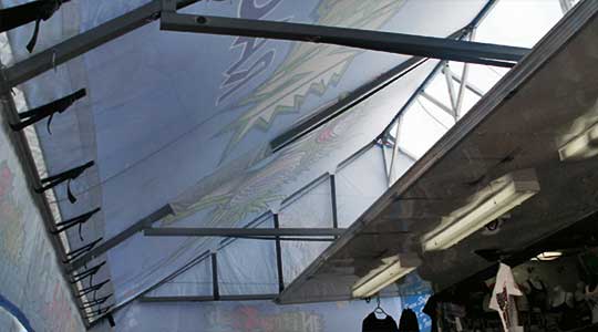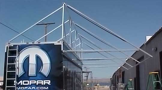 The Tiltup style frame is great for a shorter trailer that needs additional height and makes for a quick and easy set-up. The tilt section is attached with billet hinges and lays down on roof when not in use. The Tilt-Up style frame can be used in combination with Cantilever (up to 14' projection) or Single Beam style frames.