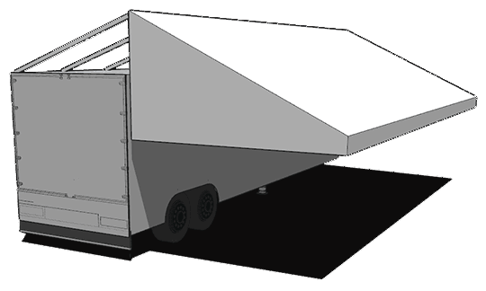 The Tiltup style frame is great for a shorter trailer that needs additional height and makes for a quick and easy set-up. The tilt section is attached with billet hinges and lays down on roof when not in use. The Tilt-Up style frame can be used in combination with Cantilever (up to 14' projection) or Single Beam style frames.